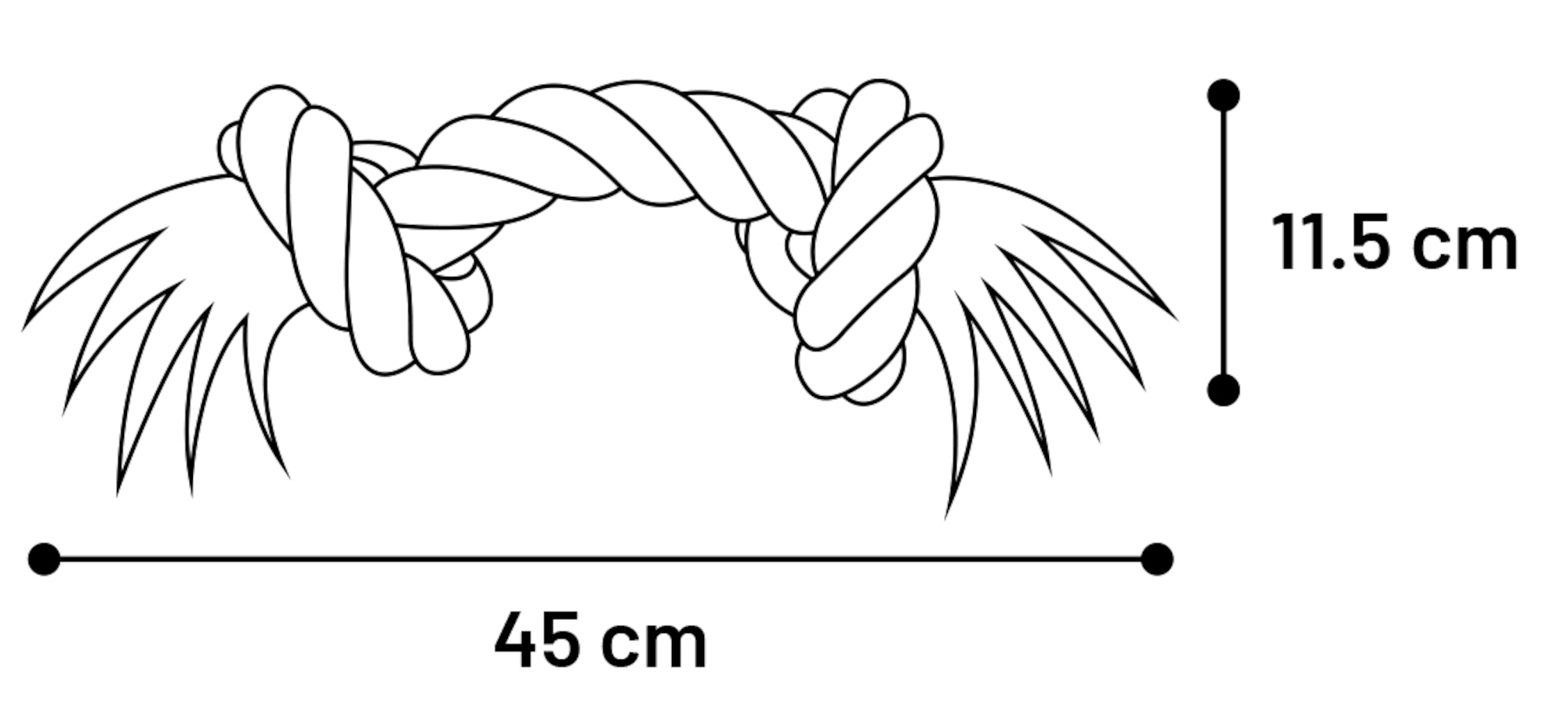 . Tweeknoop touwen in de lengte van 45 cm, 115 cm en 150 cm.