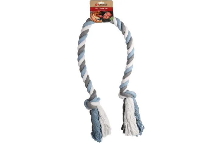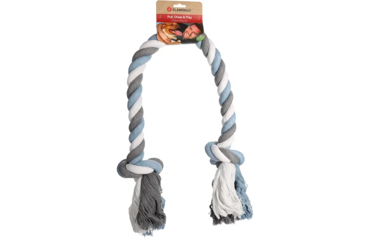 Honden hebben een grote kauwbehoefte, dit is één van de essentiële behoeftes elke dag. Dit katoenen kauwspeelgoed is perfect voor de grotere hond om mee te spelen en op te kauwen. Gemaakt van zacht maar wel stevig katoen, helpt het tandplak te voorkomen en masseert het tandvlees. Dit speelgoed geeft uw hond een JUMBO aan plezier.