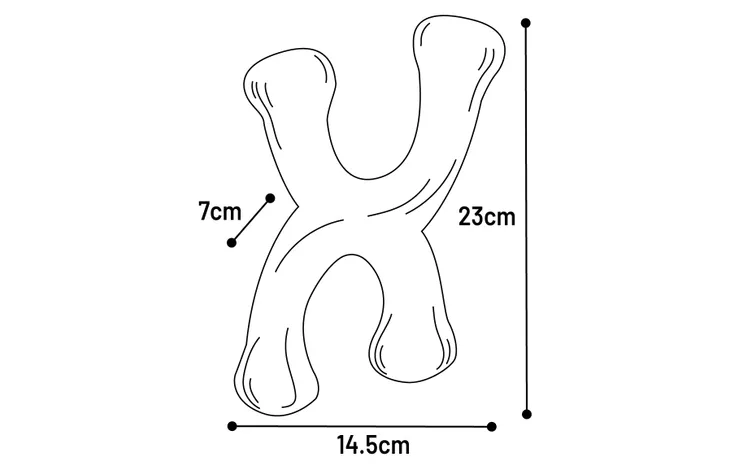 . Afmetingen: V vorm L: 23 x 14,5 x 7 cm, M: 20 x 11 x 7,5 cm, S: 15,3 x 8,7 x 6 cm.